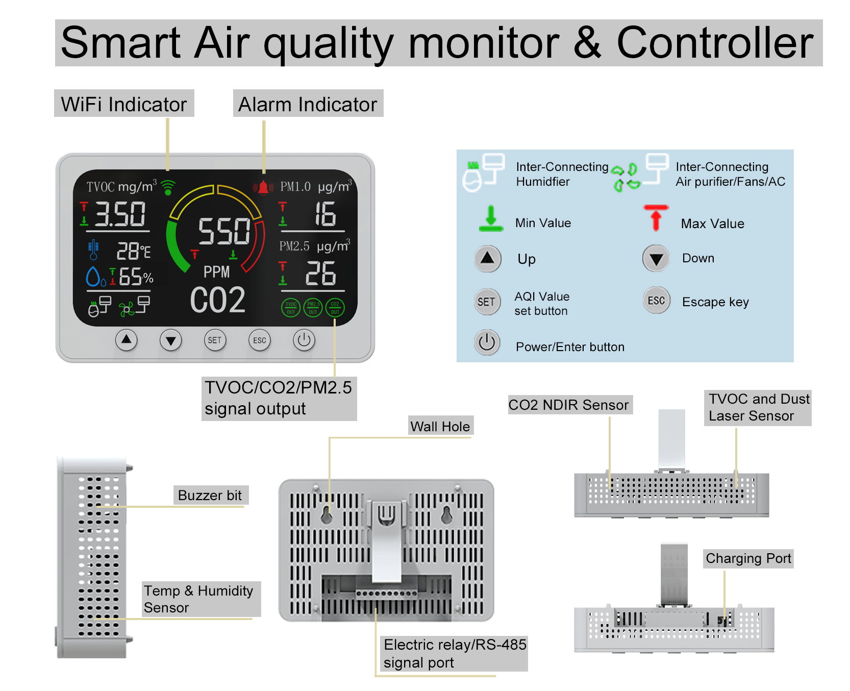 AEWPT-Binnenklimaatmeter voor CO2, temp, RV en fijnstof